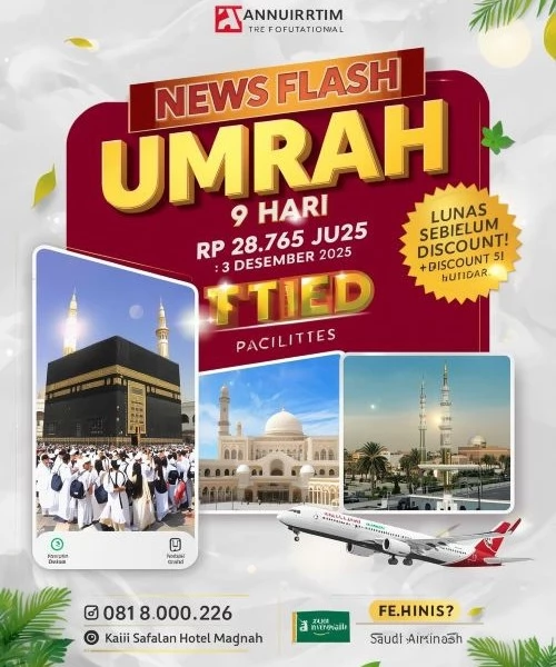 Hubungi kami sekarang di 628121002236 untuk info lengkap, jadwal keberangkatan, dan promo terbaru. Bersama kami, perjalanan spiritual ke Tanah Suci bukan sekadar impian, tapi kenyataan yang penuh keberkahan.